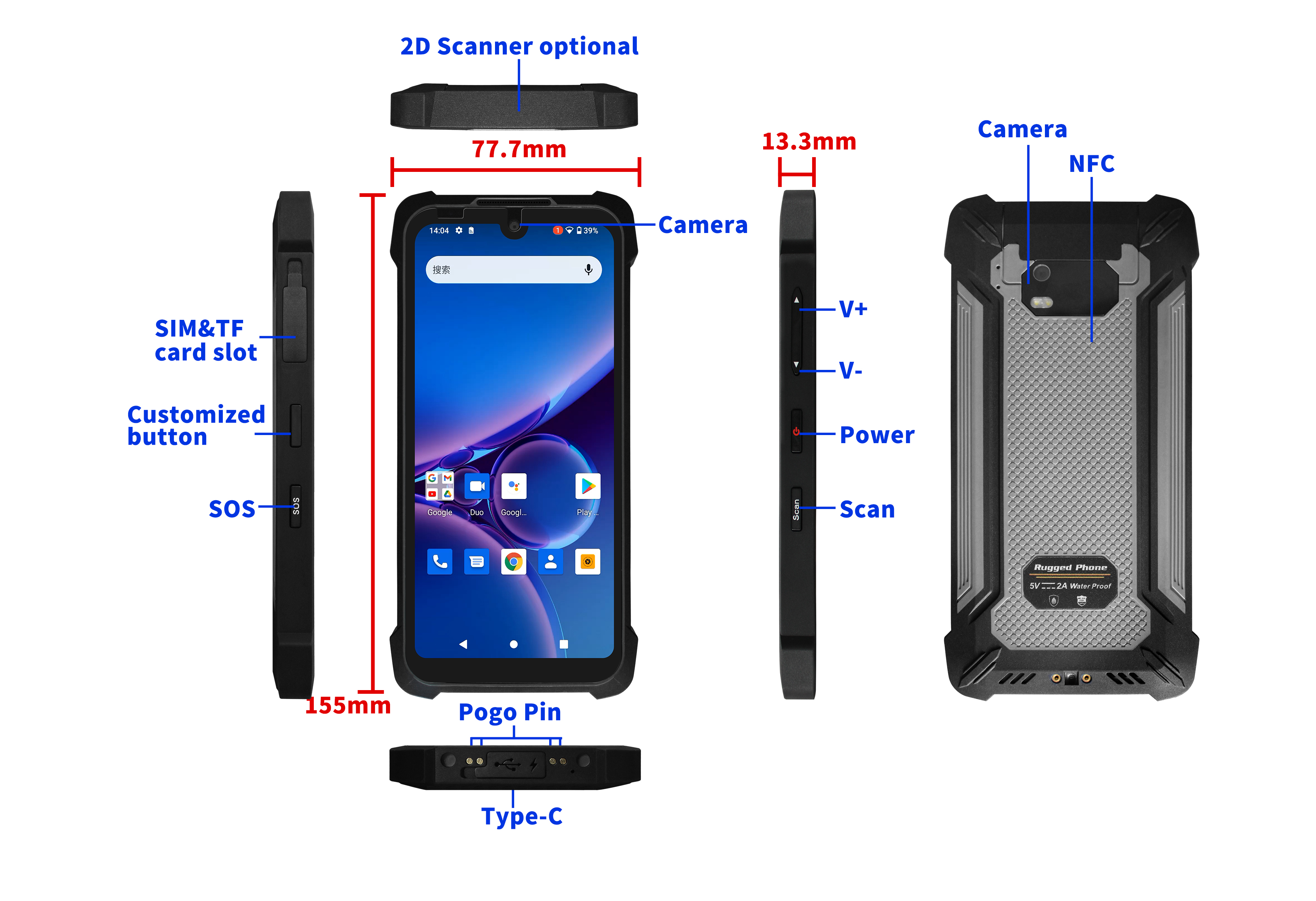 Protección IP65, 1,5 m a prueba de caídas, rango de funcionamiento de -25 ℃ ~ 50 ℃.