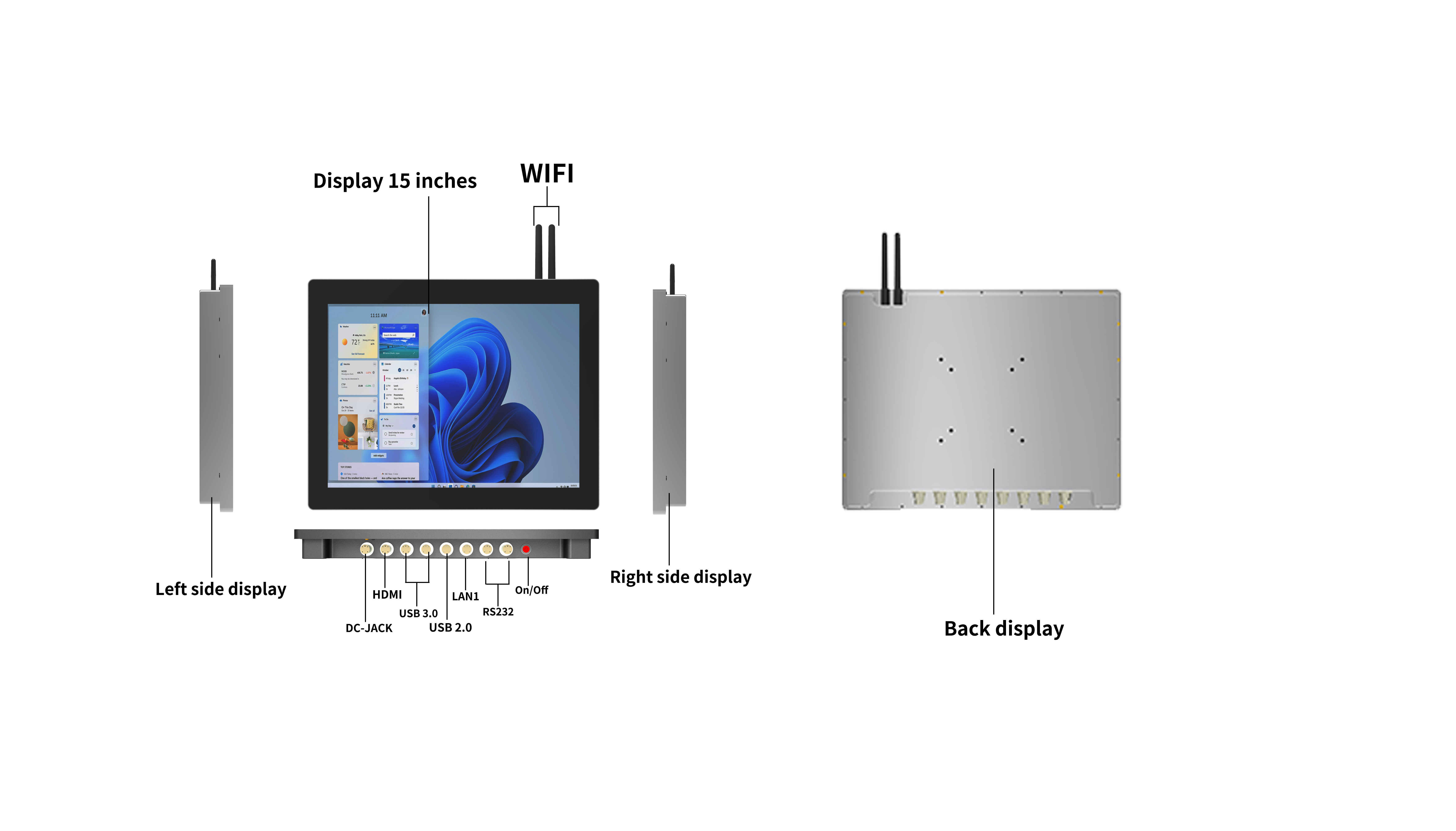 Práctica PC industrial multisistema a prueba de agua: múltiples CPU (incluidas las domésticas), pantalla HD de 15 pulgadas, WiFi / Bluetooth estable. IP65 a prueba de agua + amplia resistencia a la temperatura (se encarga de la logística / escenas industriales). Potencia de 12 V + altavoces opcionales: confiable para operaciones interindustriales.